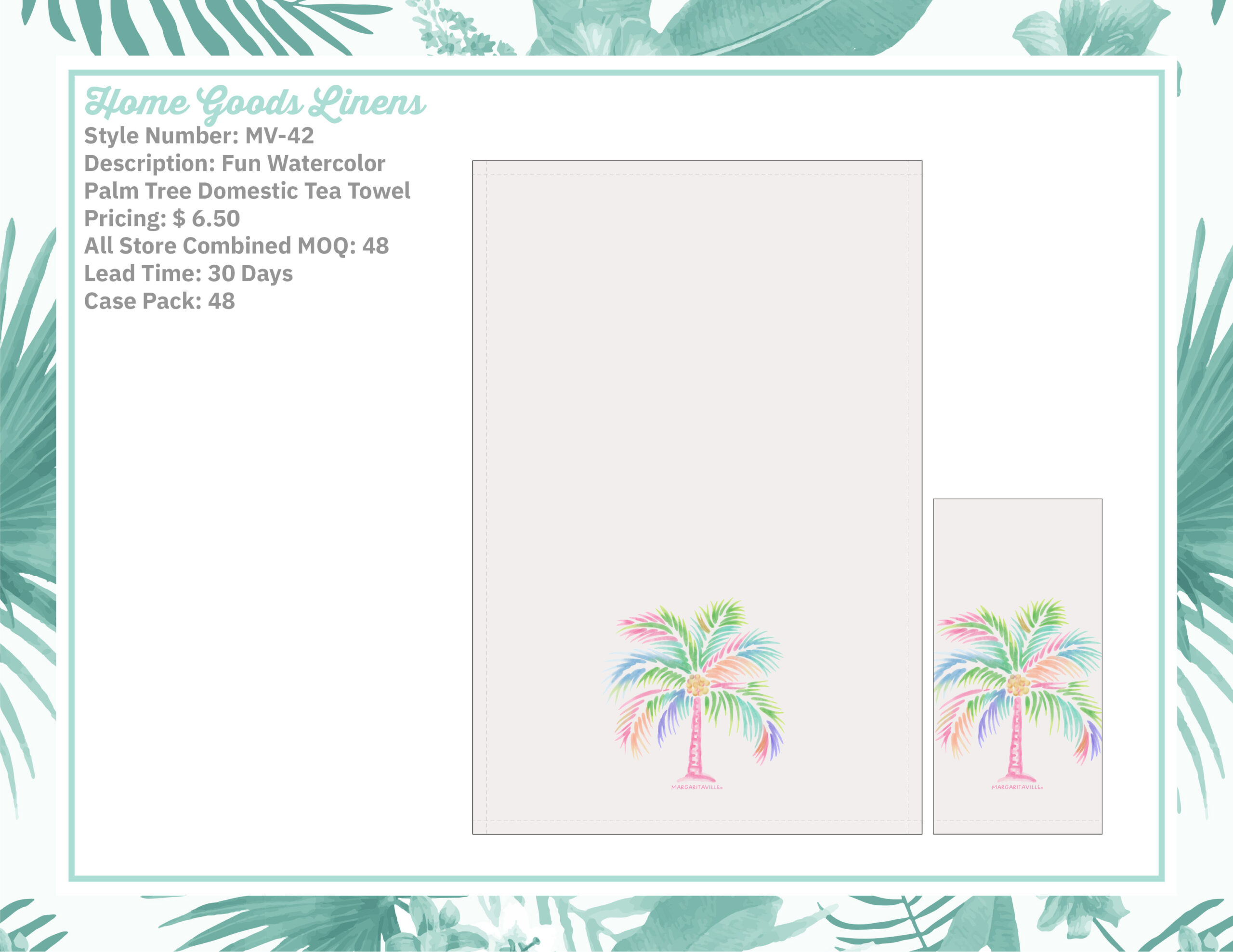 Fun Watercolor Plam Tree Domestic Tea Towel quantity